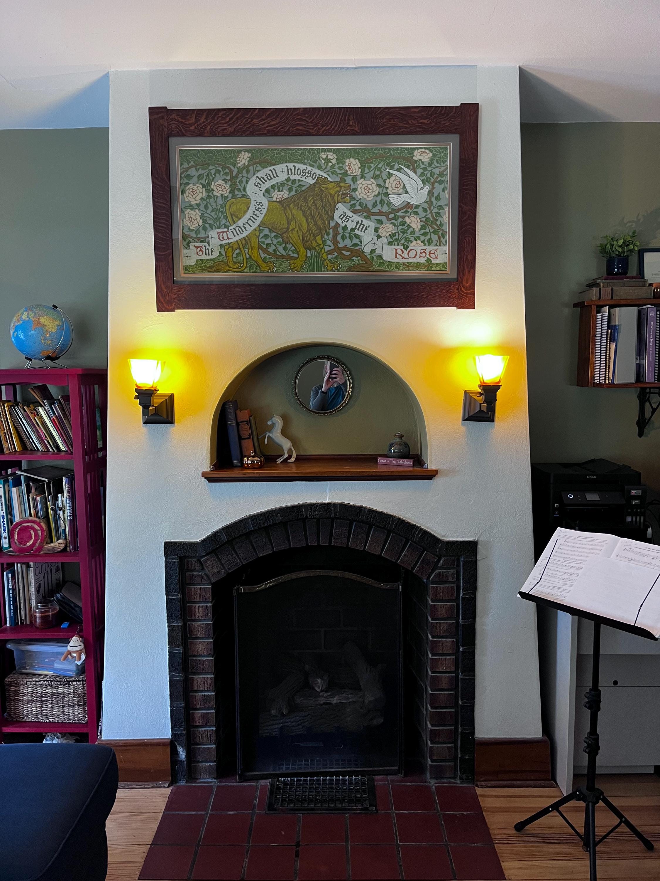 Great reproduction Arts and Crafts graphic in a well-constructed solid oak frame. Highly recommend.